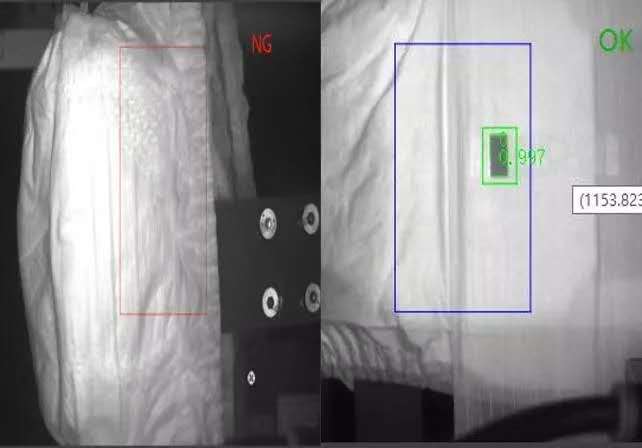 檢測耳帶是否存在結頭、紅繩,存在則認為耳帶打結,口罩不合格