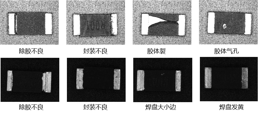 貼片電阻視覺檢測系統用于整片貼片電阻在切割前的外觀檢測,主要檢測電阻正反面是否有除膠不良、膠裂、膠體、氣孔等。適用于點膠前及點膠后的各種類型檢測。 采用MVS的自動分割、批量復制功能,易學易用。