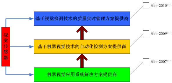 三、機(jī)器視覺應(yīng)用 機(jī)器視覺系統(tǒng)是實(shí)現(xiàn)儀器設(shè)備精密控制、智能化、自動化有有效途徑,堪稱現(xiàn)代工業(yè)生產(chǎn)的“機(jī)器眼睛”。其最大優(yōu)點(diǎn)為: (1)實(shí)現(xiàn)非接觸測量。對觀測與被觀測者都不會產(chǎn)生任何損傷,從而提高了系統(tǒng)的可靠性 (2)具有較寬的光譜響應(yīng)范圍。機(jī)器視覺則可以利用專用的光敏元件,可以觀察到人類無法看到的世界,從而擴(kuò)展了人類的視覺范圍。 (3)長時(shí)間工作。人類難以長時(shí)間地對同一對象進(jìn)行觀察。機(jī)器視覺系統(tǒng)則可以長時(shí)間地執(zhí)行觀測、分析與識別任務(wù),并可應(yīng)用于惡劣的工作環(huán)境。以下為機(jī)器視覺系統(tǒng)在不同領(lǐng)域的典型應(yīng)用: 機(jī)器視覺系統(tǒng)在不同領(lǐng)域的典型應(yīng)用