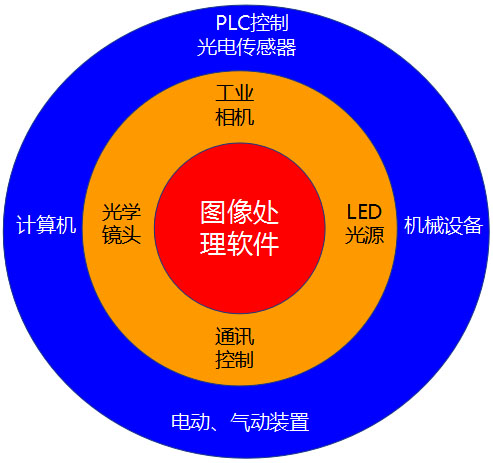 圖像采集 光學(xué)系統(tǒng)采集圖像,圖像轉(zhuǎn)換成模擬格式并傳入計(jì)算機(jī)存儲器。 圖像處理 處理器運(yùn)用不同的算法來提高對結(jié)論有重要影響的圖像要素。 特性提取 處理器識別并量化圖像的關(guān)鍵特性,例如印刷電路板上洞的位置或者連接器上引腳的個(gè)數(shù)。然后這些數(shù)據(jù)傳送到控制程序。判決和控制 處理器的控制程序根據(jù)收到的數(shù)據(jù)做出結(jié)論。例如:這些數(shù)據(jù)包括印刷電路板上的洞是否在要求規(guī)格以內(nèi)或者一個(gè)自動機(jī)器如何必須移動去拾取某一部件。