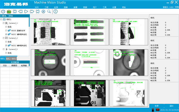輔料貼合視覺系統是針對輔料貼合、尺寸檢測專項定制的一款成熟穩定的產品。對輔料尺寸、缺陷檢測,并進行定位貼合及貼合后檢查,確保輔料合格、貼合準確,適用于多種貼合定位方式及多工位貼合。本系統由海克易邦機器視覺檢測系統軟件MVS2.0開發,軟件使用簡單,無需編程,開發快捷。